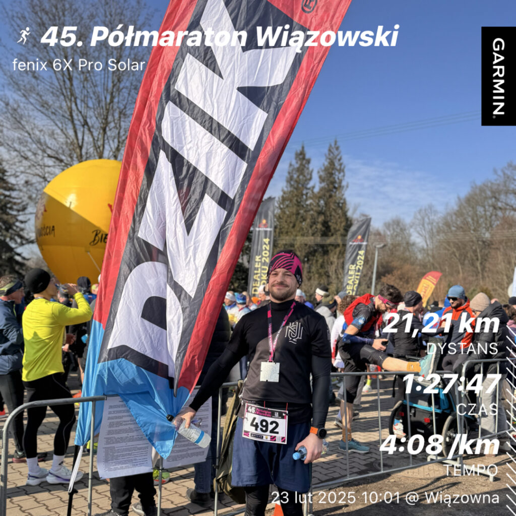 Ostatecznie udało się osiągnąć zamierzony cel- wynik 1:27:43. Oj byłem z siebie zadowolony, ponieważ i nie zabrakło sił, żeby na 3 km od mety przyspieszyć, na 2 km dołożyć aż by na ostatnim kilometrze wyłączyć myślenie i wszystko co można włożyć w nogi.